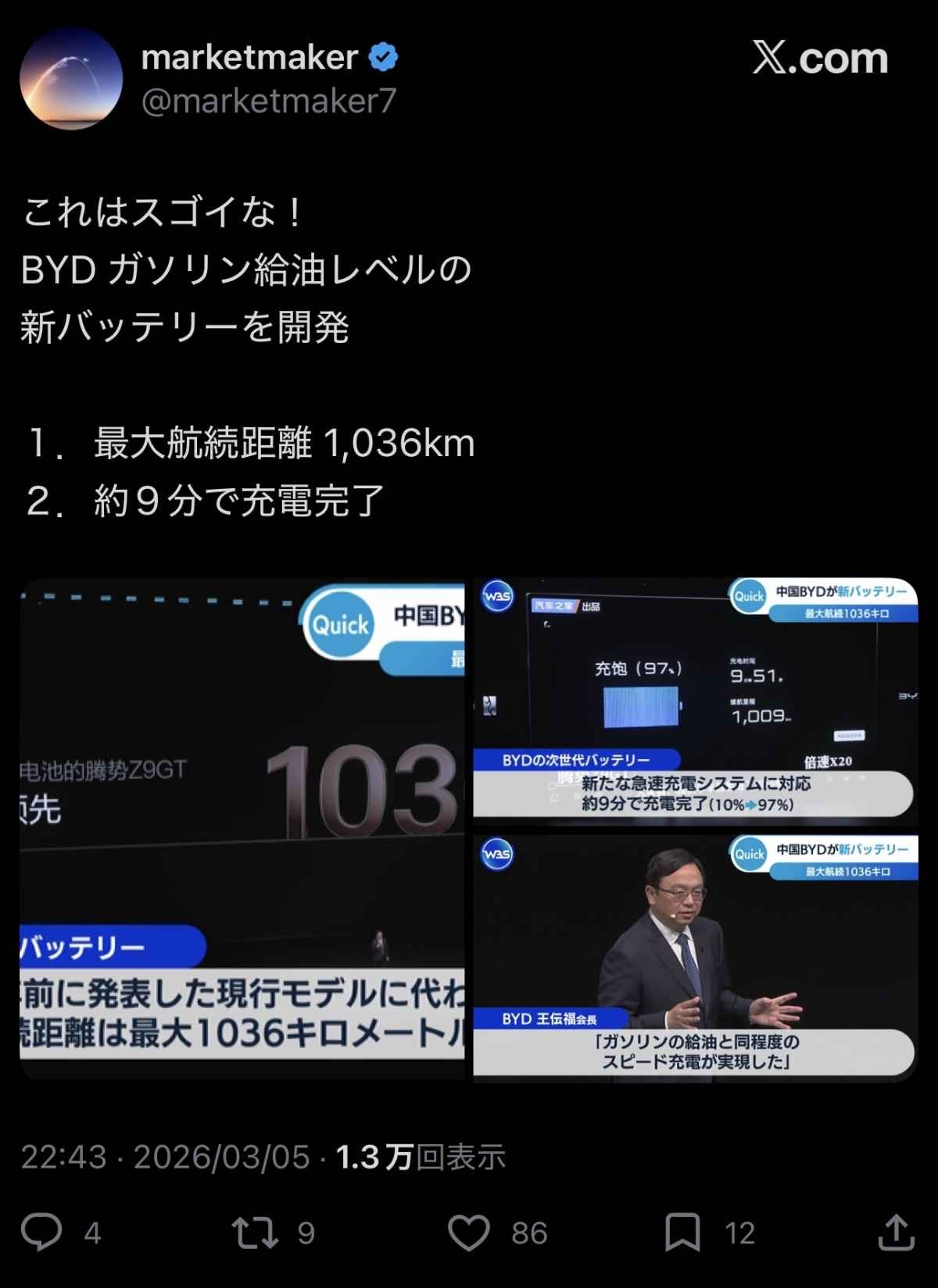トヨタ抜かれてんじゃんwトヨタも10分で充電できるバッテリーとか言ってたよなパクられたか