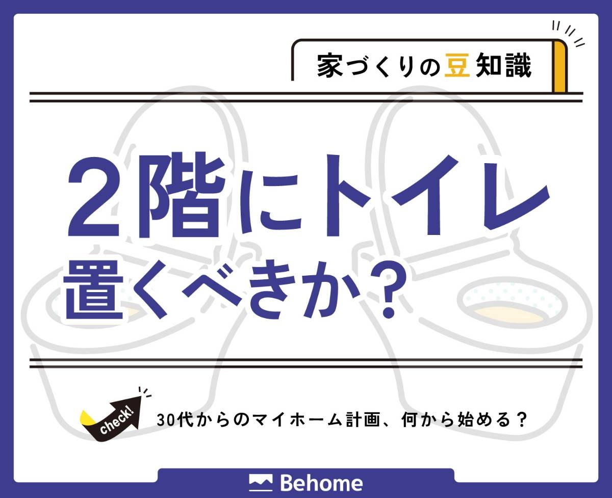 階下への音が気になることも 二階にトイレを設置するべきか?メリット・デメリットを解説二階トイレの設置を迷う方へ。メリット・デメリットや判断基準、設置時の注意点まで、わかりやすく解説します。behome.co.jp