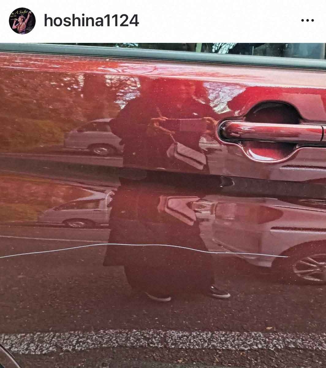 「昨日とある場所に停めていた私の愛車が、傷をつけられてしまいました」と報告。「右の前のドアと後のドア、そして左のドアと後のドア。写真のようにギーと」とドアに白い線が入った愛車の写真をアップした。