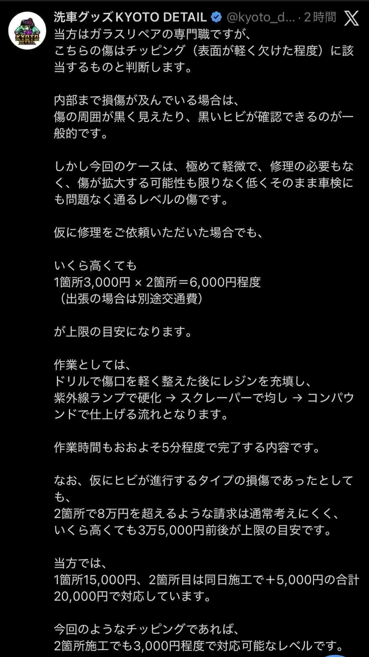 ガラスリペア専門家の見立て