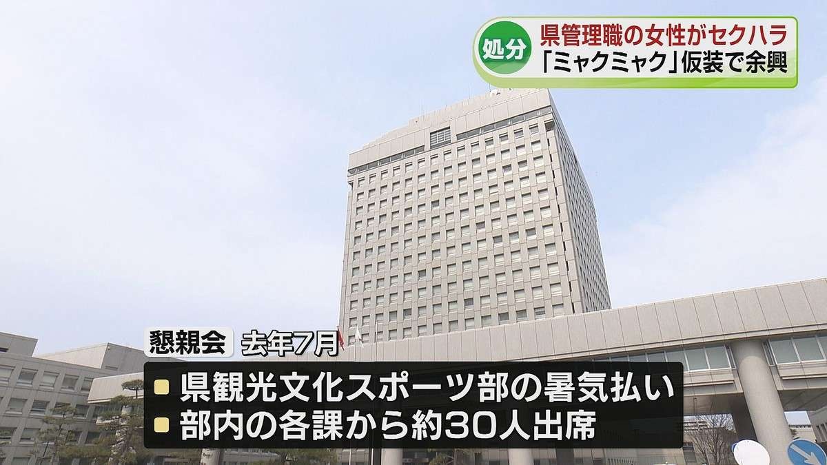 県の観光文化スポーツ部に所属する管理職の50代女性が、部内の懇親会で大阪・関西万博の公式キャラクター「ミャクミャク」に仮装し、部下にセクハラを行っていたとして訓戒の処分を受けました。