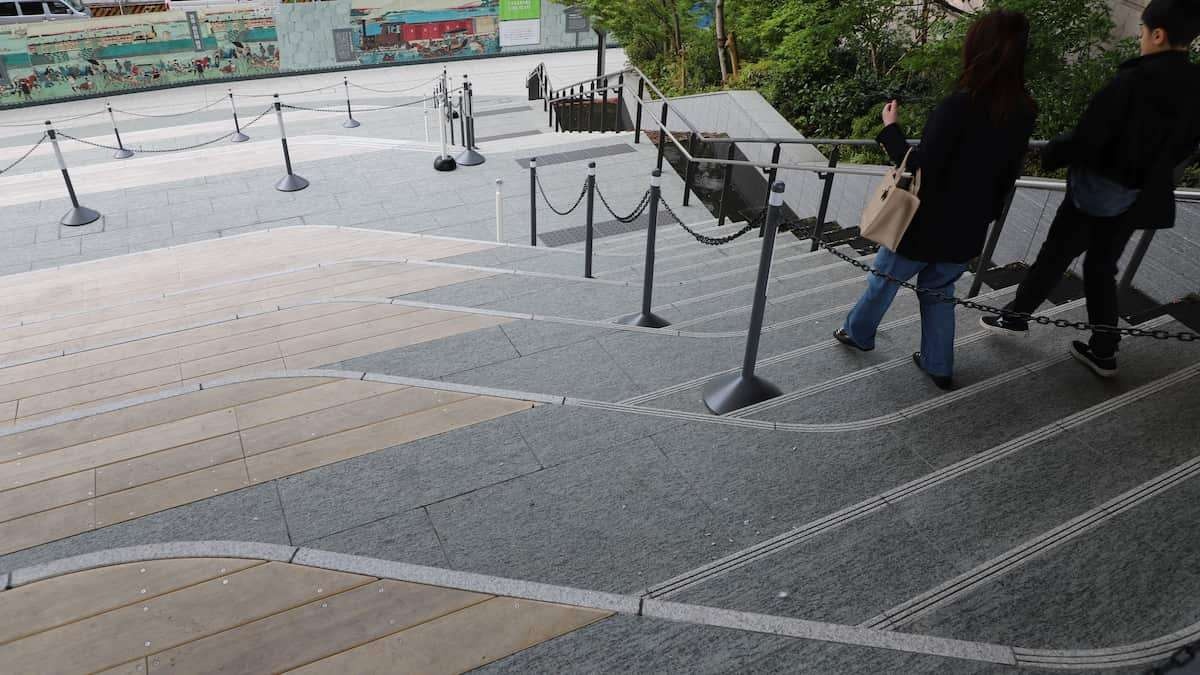 高輪ゲートウェイ「危険な大階段」で複数けが人…JR東が対策 隈研吾氏設計説は誤情報