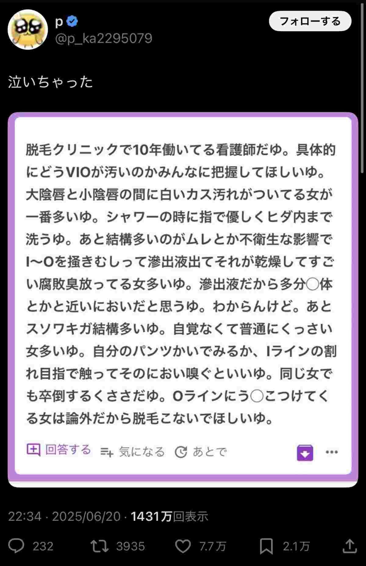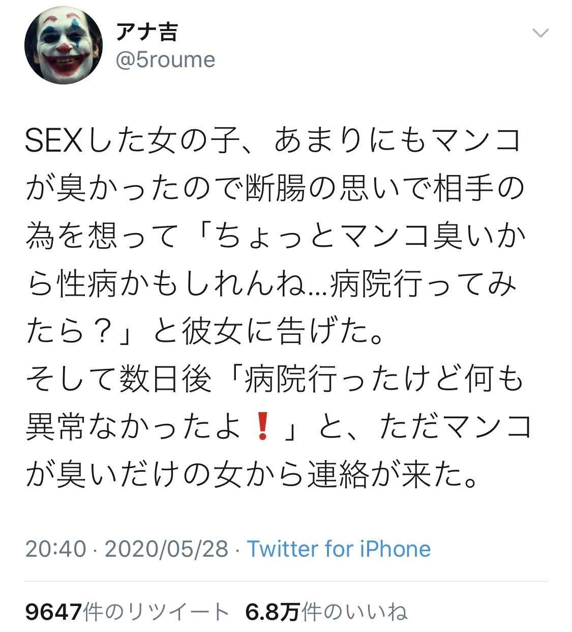 「膣くせえ!!!!!!!!!!!!!!!」(20歳 アパレル)