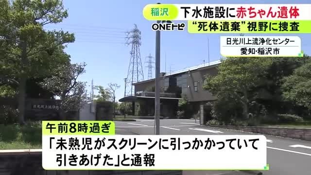 愛知県稲沢市の下水処理施設で、流されてきたとみられる赤ちゃんの遺体が見つかりました。警察が、死体遺棄事件の可能性もあるとみて調べています。