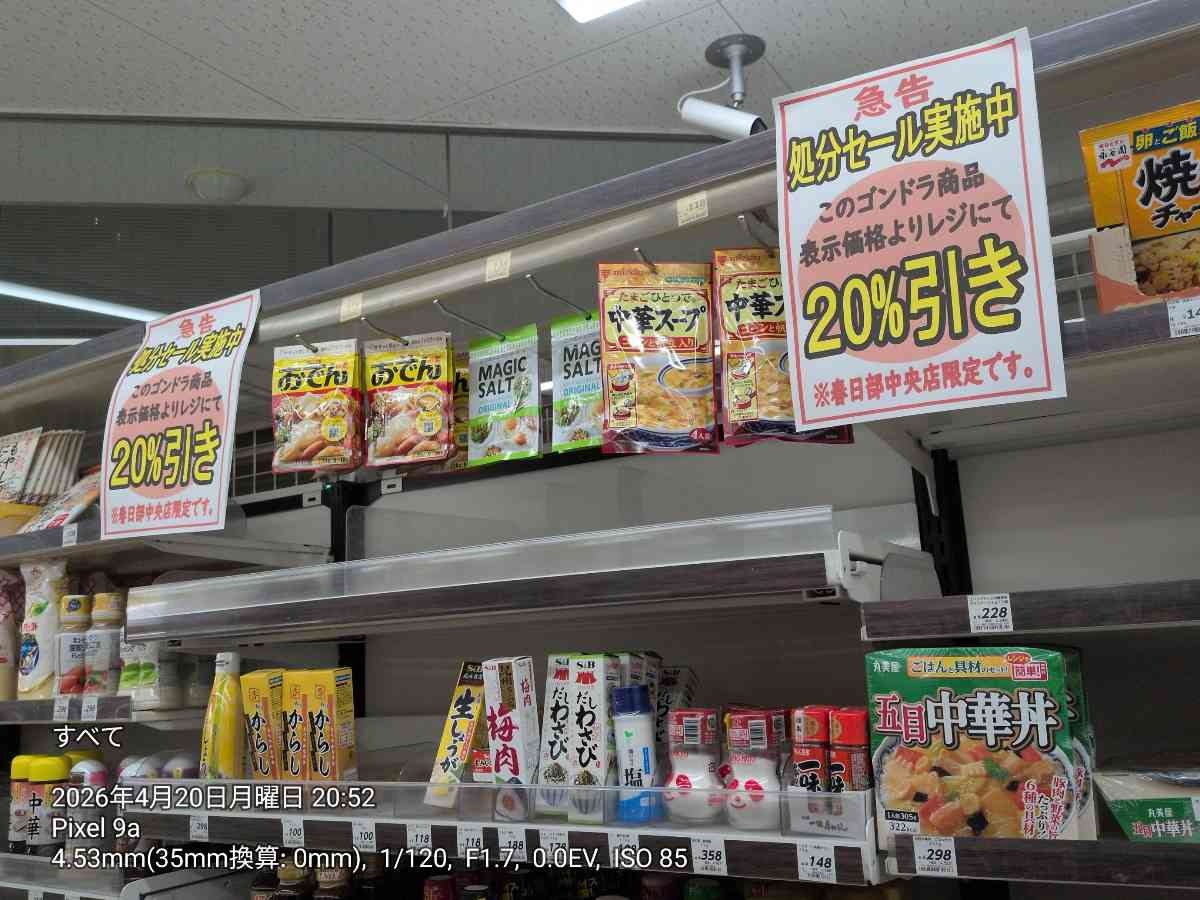 また、一部の商品が10%・20%・30%引きとなっており、棚の商品が少なくなっている様子も見られました。(※対象外の商品もあります)