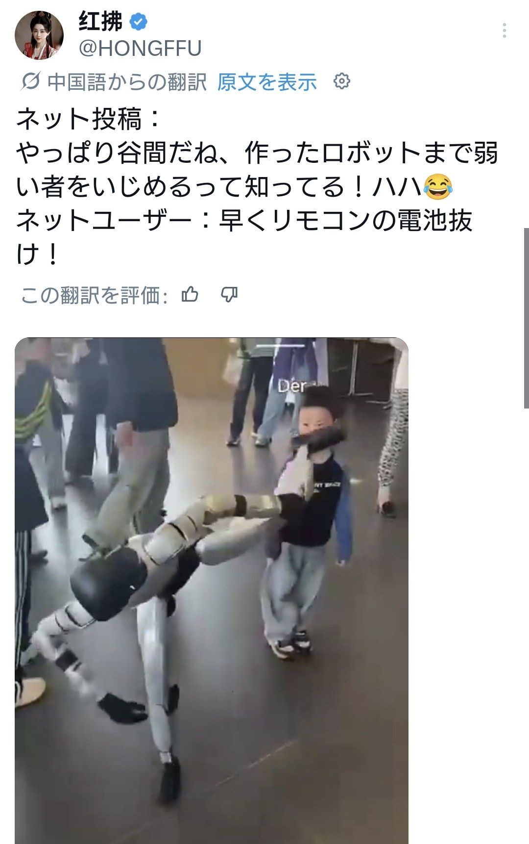 中国製のロボットでさえ中国人は倒した方がいいと判断してるんだね