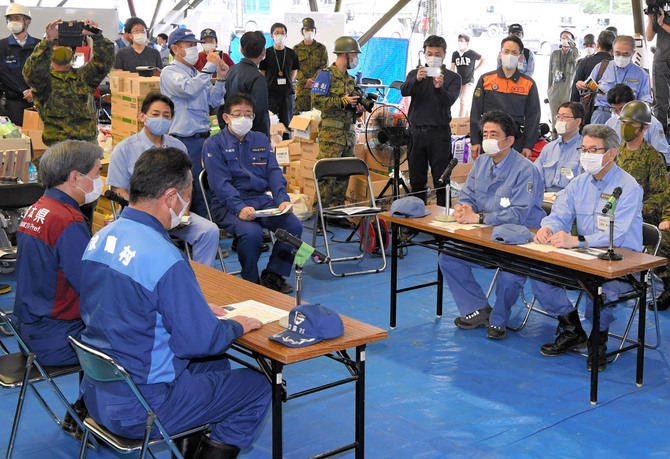 安倍首相は大きな災害が起きると必ず、被災地に入る。「自ら現場の声を聞いて、復旧、復興につなげたい」(菅義偉官房長官)との思いからだ。閣僚や与党幹部も同様で、今回の豪雨では、武田良太防災担当相や自民党の二階俊博幹事長、岸田文雄政調会長、公明党の山口那津男代表が熊本や福岡、鹿児島を回った。「見てもらえてうれしかった」。この日、首相に小学校の浸水被害を直接訴えた60代女性は振り返った。