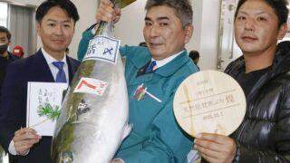 ニュー速+【お寿司🍣】高級寒ブリ1匹400万円、石川県金沢 能登で水揚げ、過去最高値に並ぶ