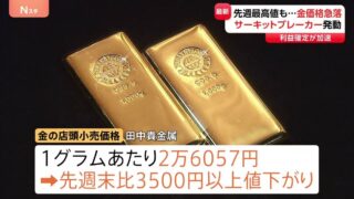 ニュー速+金価格が急落 3500円以上も値下がり 「サーキットブレーカー」発動