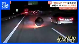 ニュー速燃えるタイヤが急接近!高速道路を走る夜行バスの目の前に脱輪したタイヤ…ドラレコが捉えた