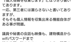 ニュー速小野田議員が指摘した議員会館のロボット掃除機の危険性『個人情報を収集します』とはっきり記載